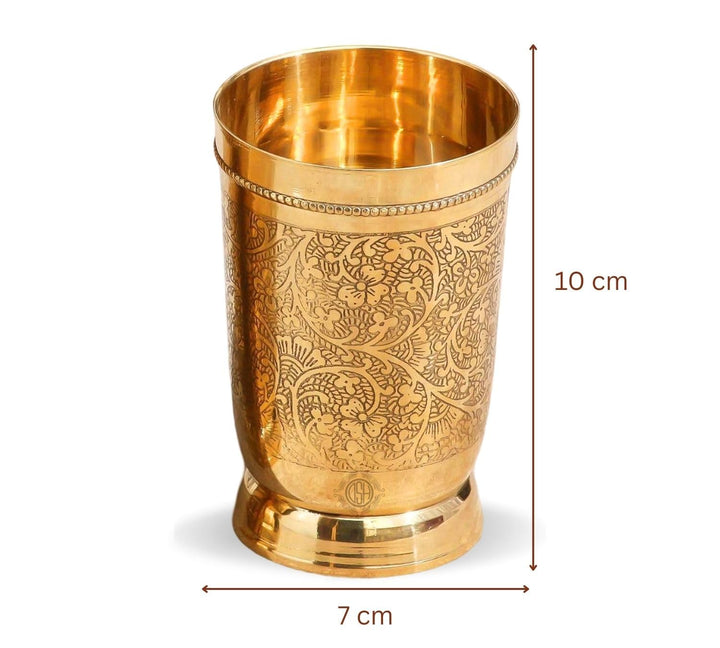 Get the perfect gift for any special occasion with DSH Brass Glass/Tumbler! Made of pure brass, this round-shaped glass is easy to clean and maintain, making it perfect for serving water. Its highly polished premium quality makes it a wonderful gift!